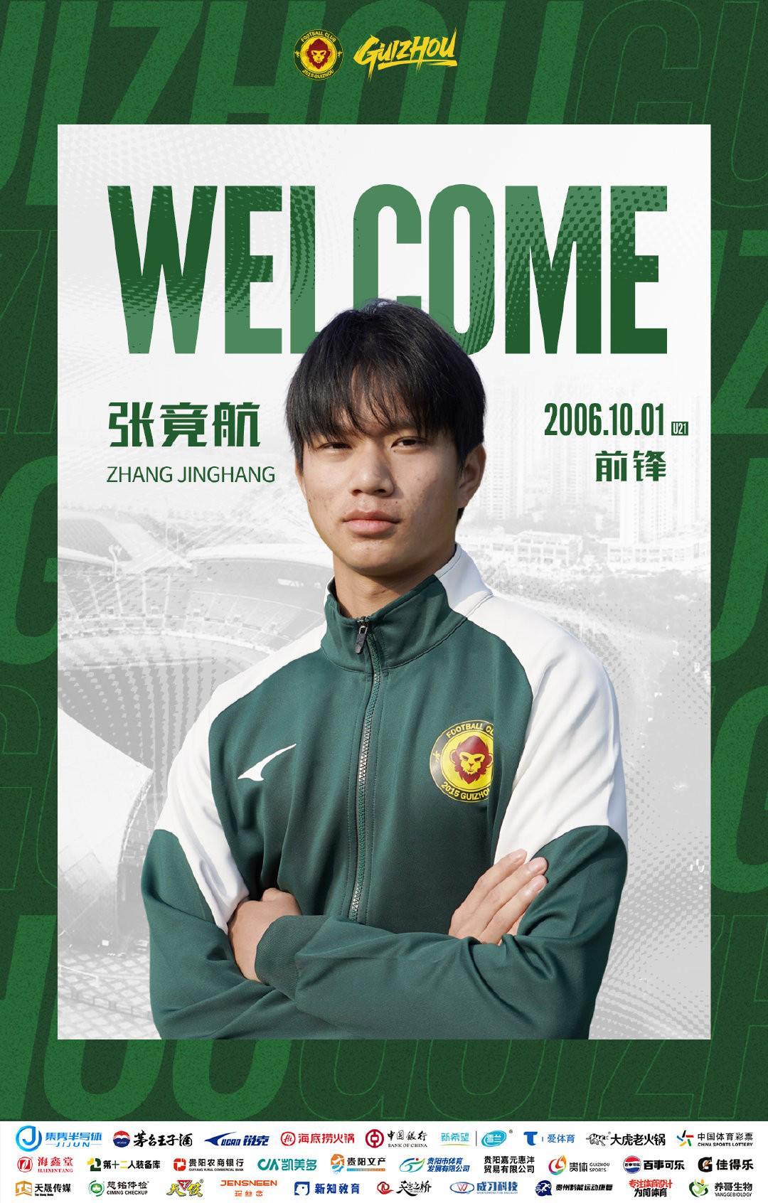 欢迎张竟航加入贵州筑城竞技大家庭,让我们一起凝心聚力,为贵州而战!